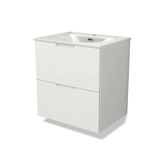 Modulo Bathroom furniture with sink | 60 cm Matte white Line front Ceramic 2 Stacked drawers