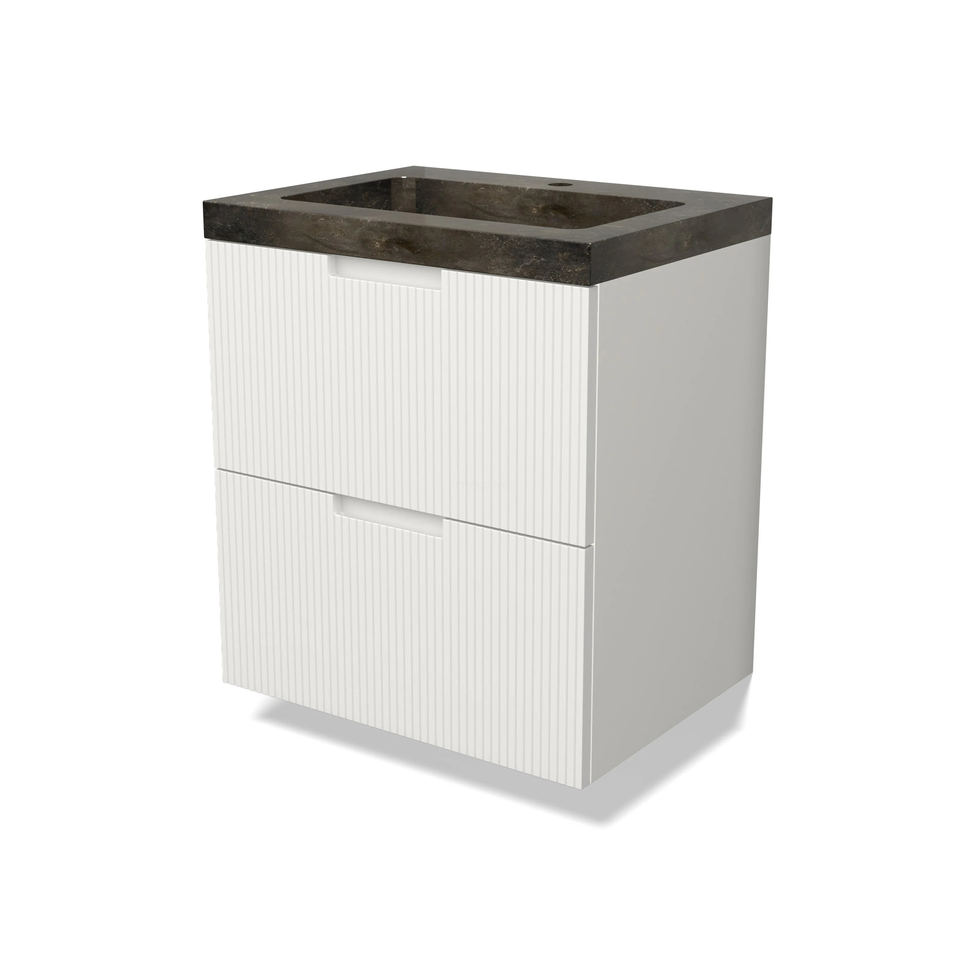 Modulo Bathroom furniture with sink | 60 cm Matte white Line front Natural stone 2 Stacked drawers