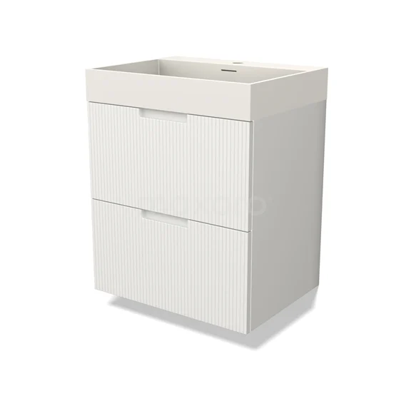 Modulo Bathroom furniture with sink | 60 cm Matte white Line front Solid surface 2 Stacked drawers