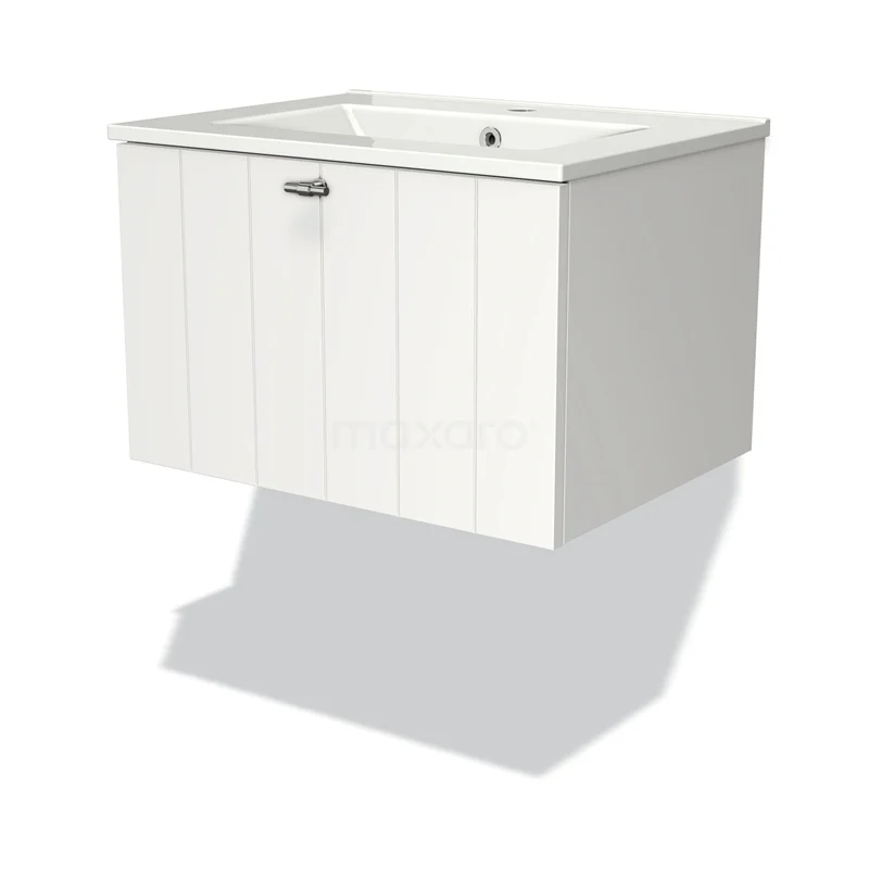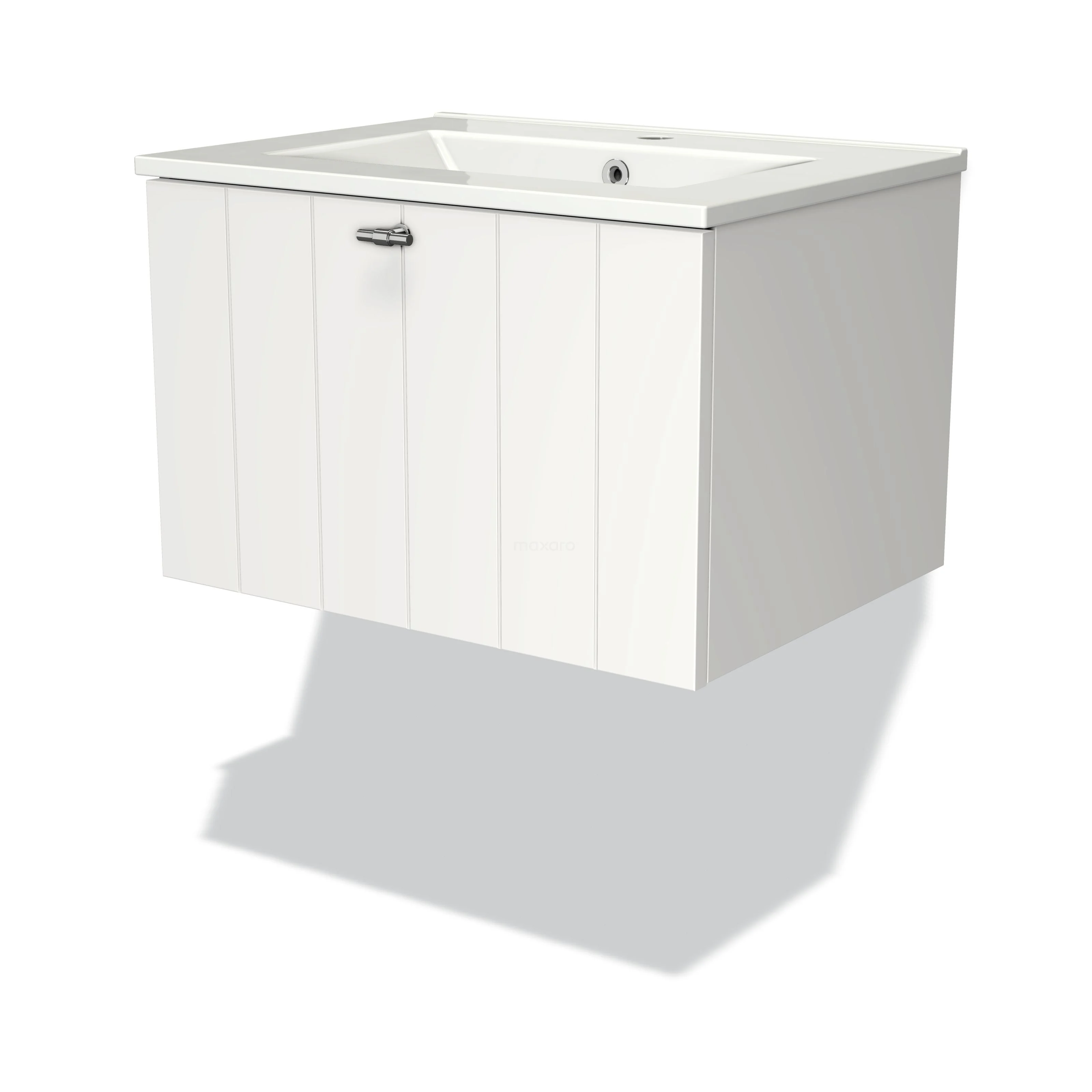Modulo Bathroom furniture with sink | 60 cm Matte white Slat front Ceramic 1 drawer