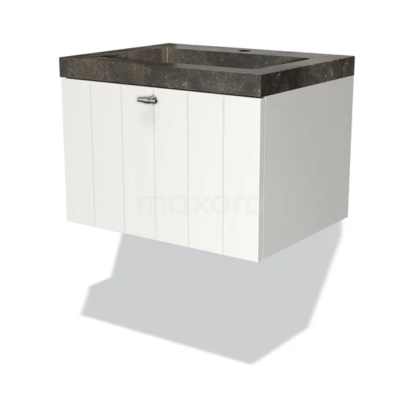 Modulo Bathroom furniture with sink | 60 cm Matte white Slat front Natural stone 1 drawer