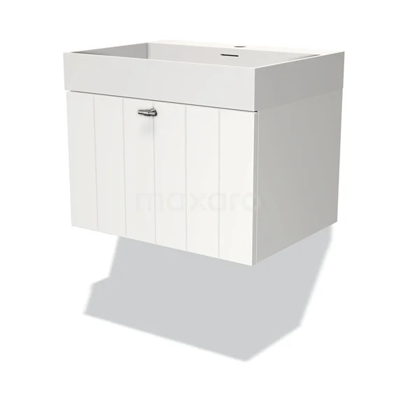 Modulo Bathroom furniture with sink | 60 cm Matte white Slat front Solid surface 1 drawer
