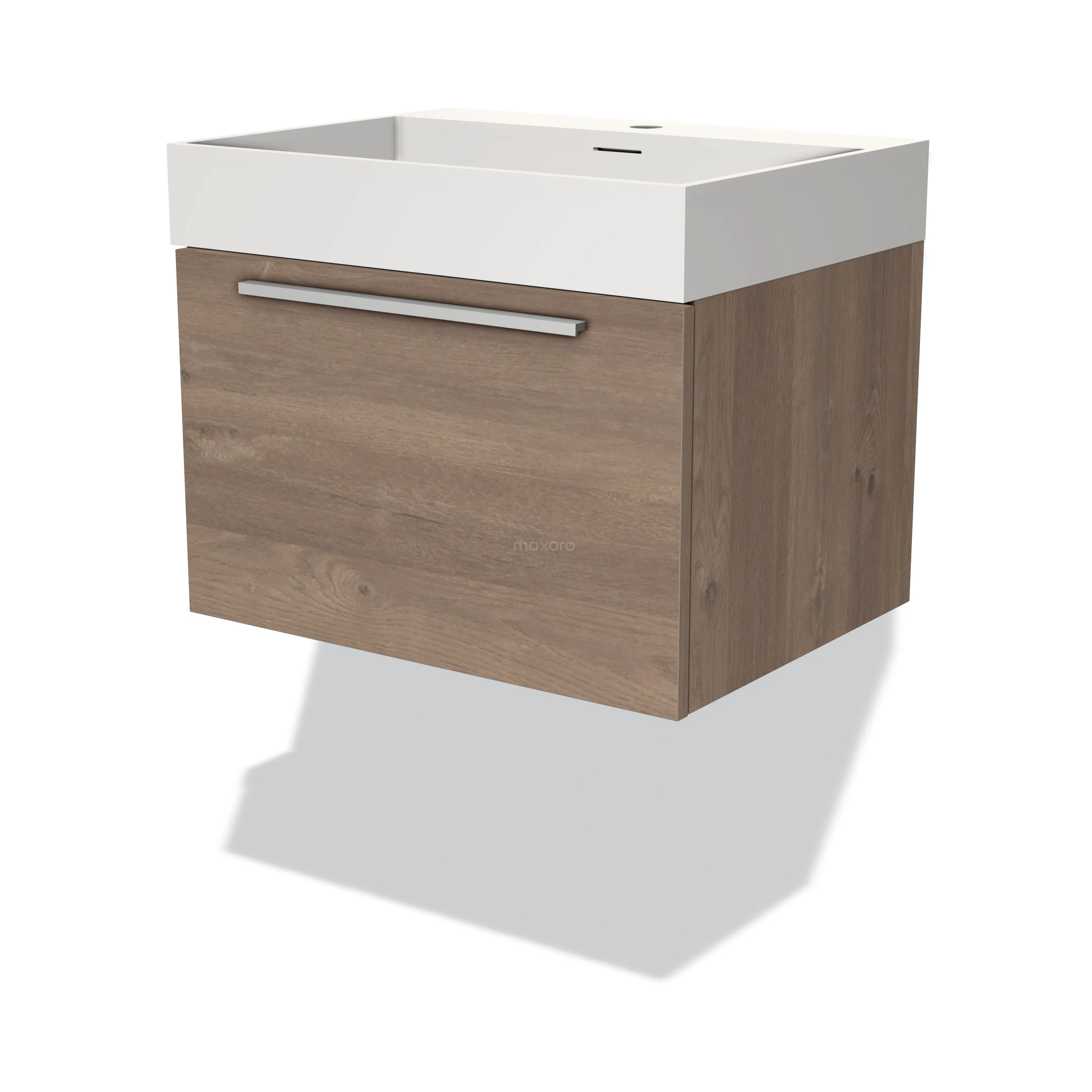Modulo Bathroom furniture with sink | 60 cm Mid brown oak Flat front Solid surface 1 drawer