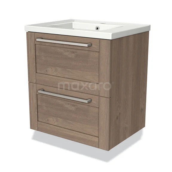 Modulo Bathroom furniture with sink | 60 cm Mid brown oak Frame front Ceramic 2 Stacked drawers