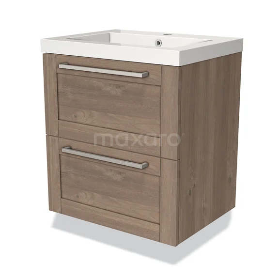 Modulo Bathroom furniture with sink | 60 cm Mid brown oak Frame front Mineral marble 2 Stacked drawers