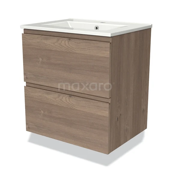 Modulo Bathroom furniture with sink | 60 cm Mid brown oak Handle-less front Ceramic 2 Stacked drawers