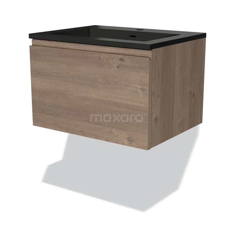 Modulo Bathroom furniture with sink | 60 cm Mid brown oak Handle-less front Quartz 1 drawer