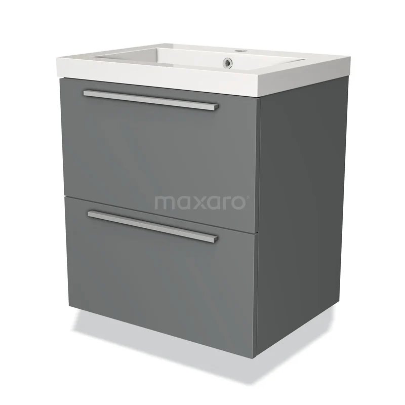 Modulo Bathroom furniture with sink | 60 cm Mid grey Flat front Mineral marble 2 Stacked drawers