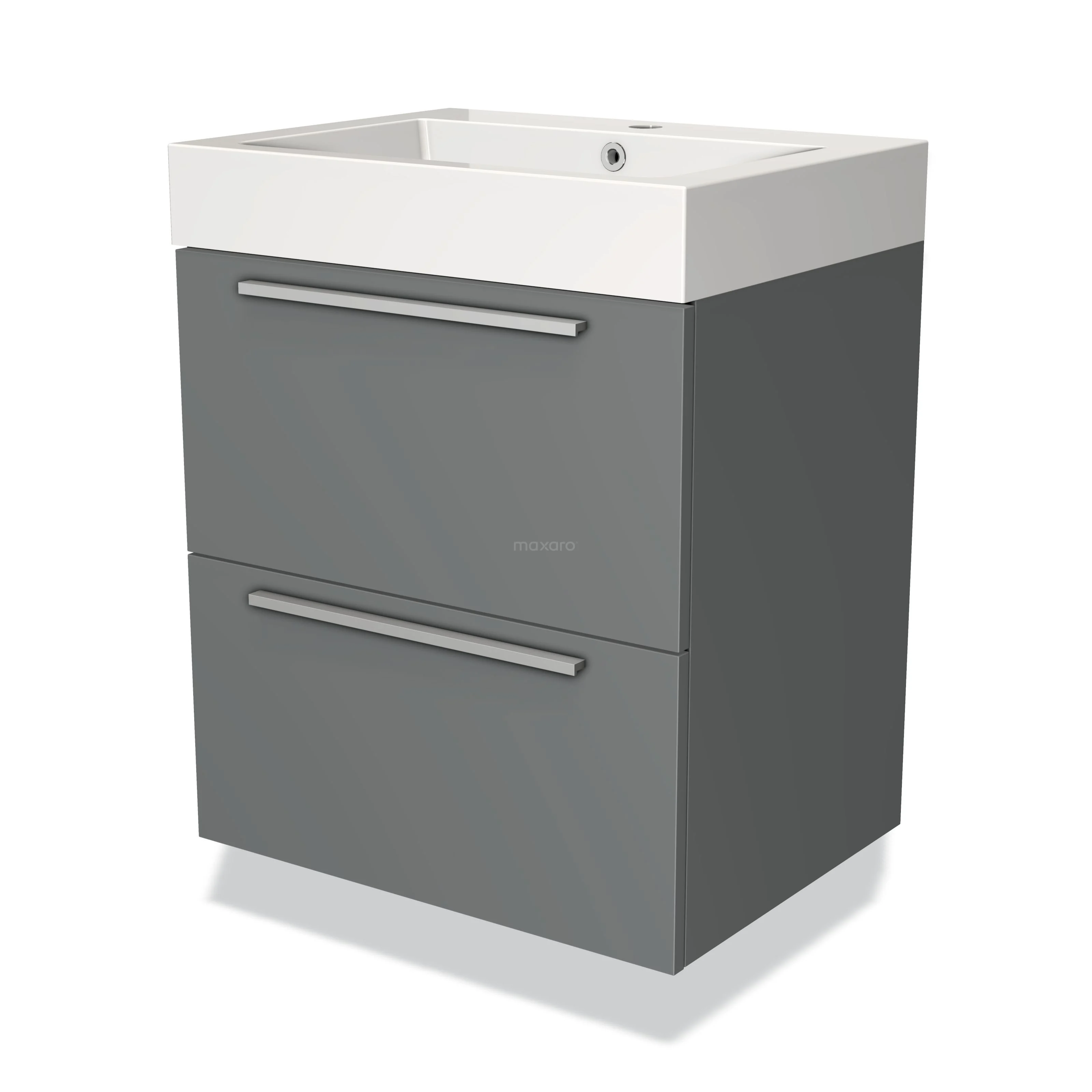 Modulo Bathroom furniture with sink | 60 cm Mid grey Flat front Mineral marble 2 Stacked drawers