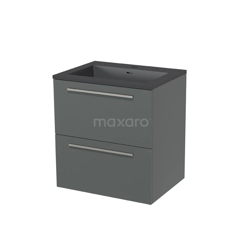 Modulo Bathroom furniture with sink | 60 cm Mid grey Flat front Quartz 2 Stacked drawers