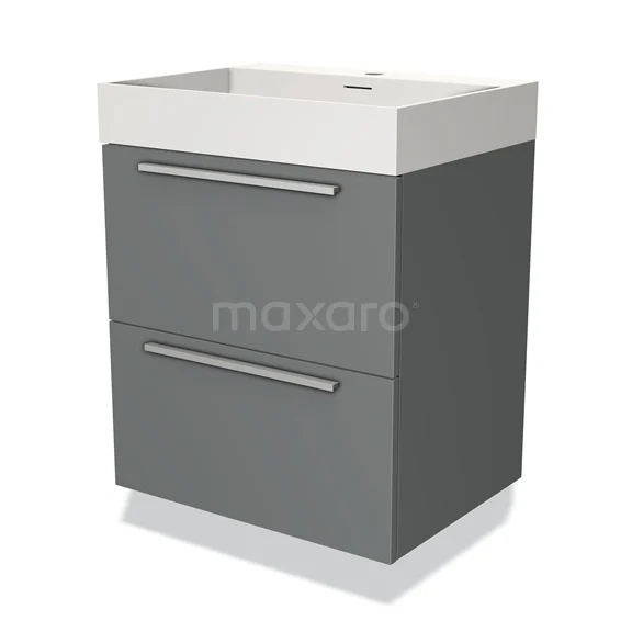 Modulo Bathroom furniture with sink | 60 cm Mid grey Flat front Solid surface 2 Stacked drawers