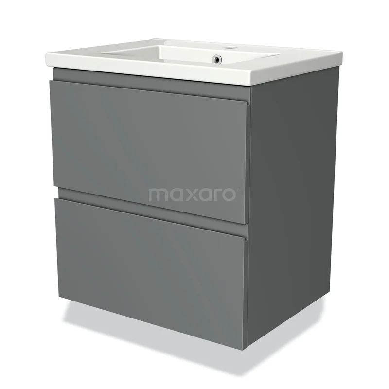 Modulo Bathroom furniture with sink | 60 cm Mid grey Handle-less front Ceramic 2 Stacked drawers