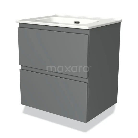 Modulo Bathroom furniture with sink | 60 cm Mid grey Handle-less front Ceramic 2 Stacked drawers
