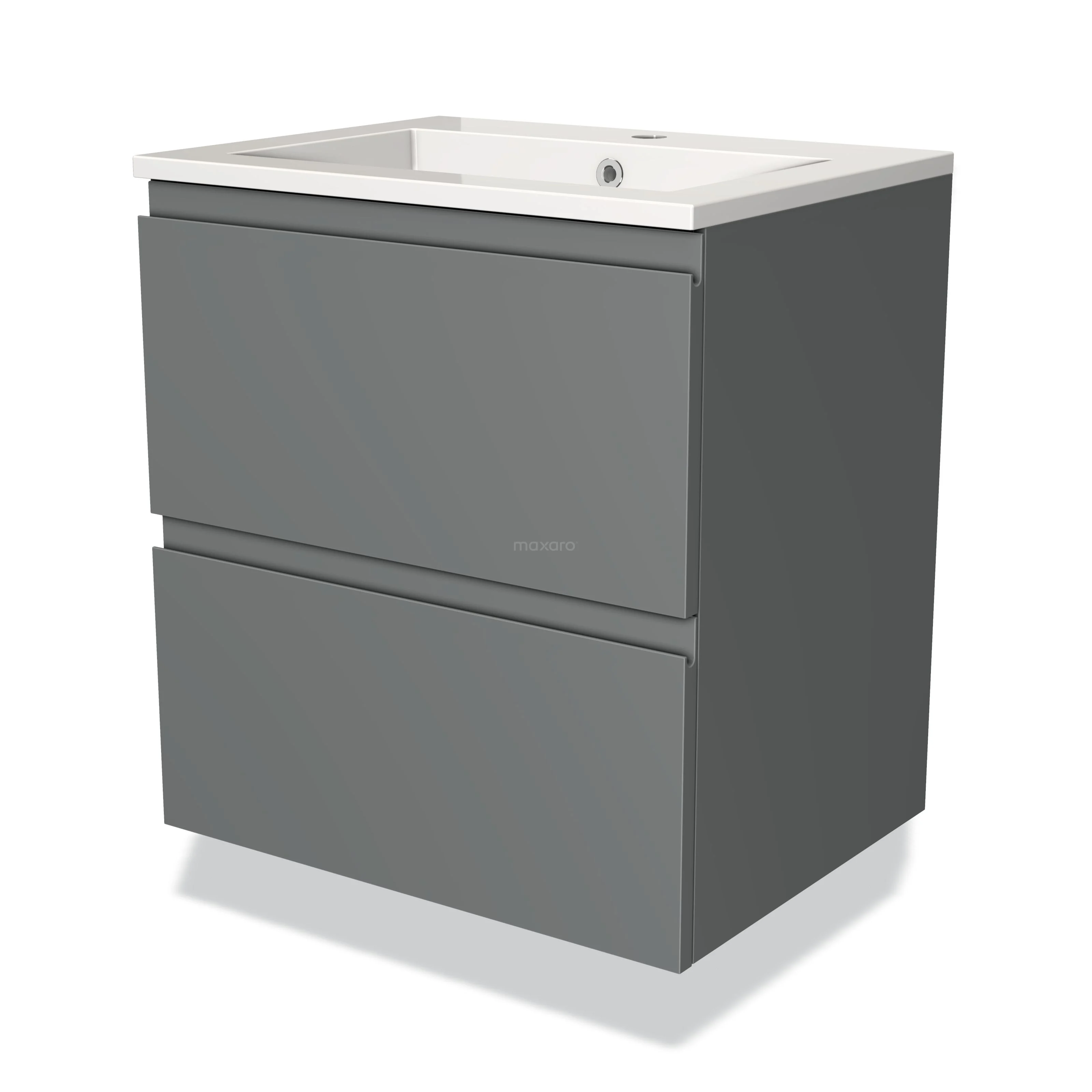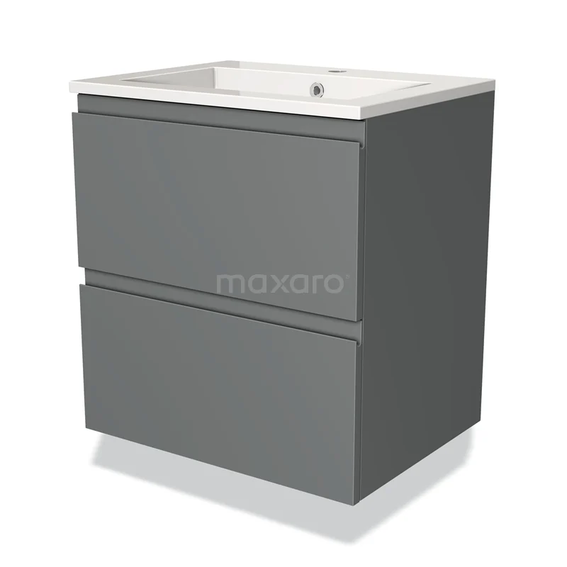 Modulo Bathroom furniture with sink | 60 cm Mid grey Handle-less front Mineral marble 2 Stacked drawers