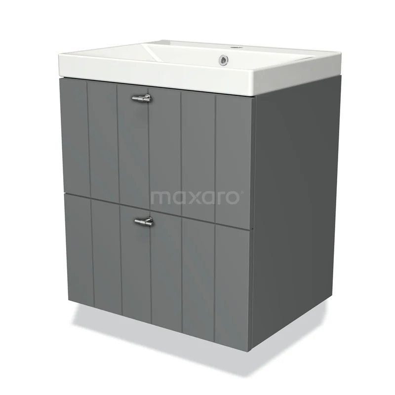 Modulo Bathroom furniture with sink | 60 cm Mid grey Slat front Ceramic 2 Stacked drawers