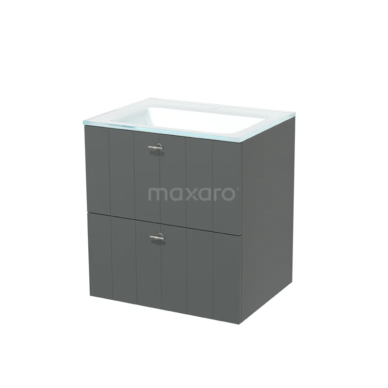 Modulo Bathroom furniture with sink | 60 cm Mid grey Slat front Glass 2 Stacked drawers