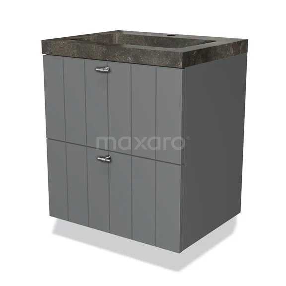 Modulo Bathroom furniture with sink | 60 cm Mid grey Slat front Natural stone 2 Stacked drawers