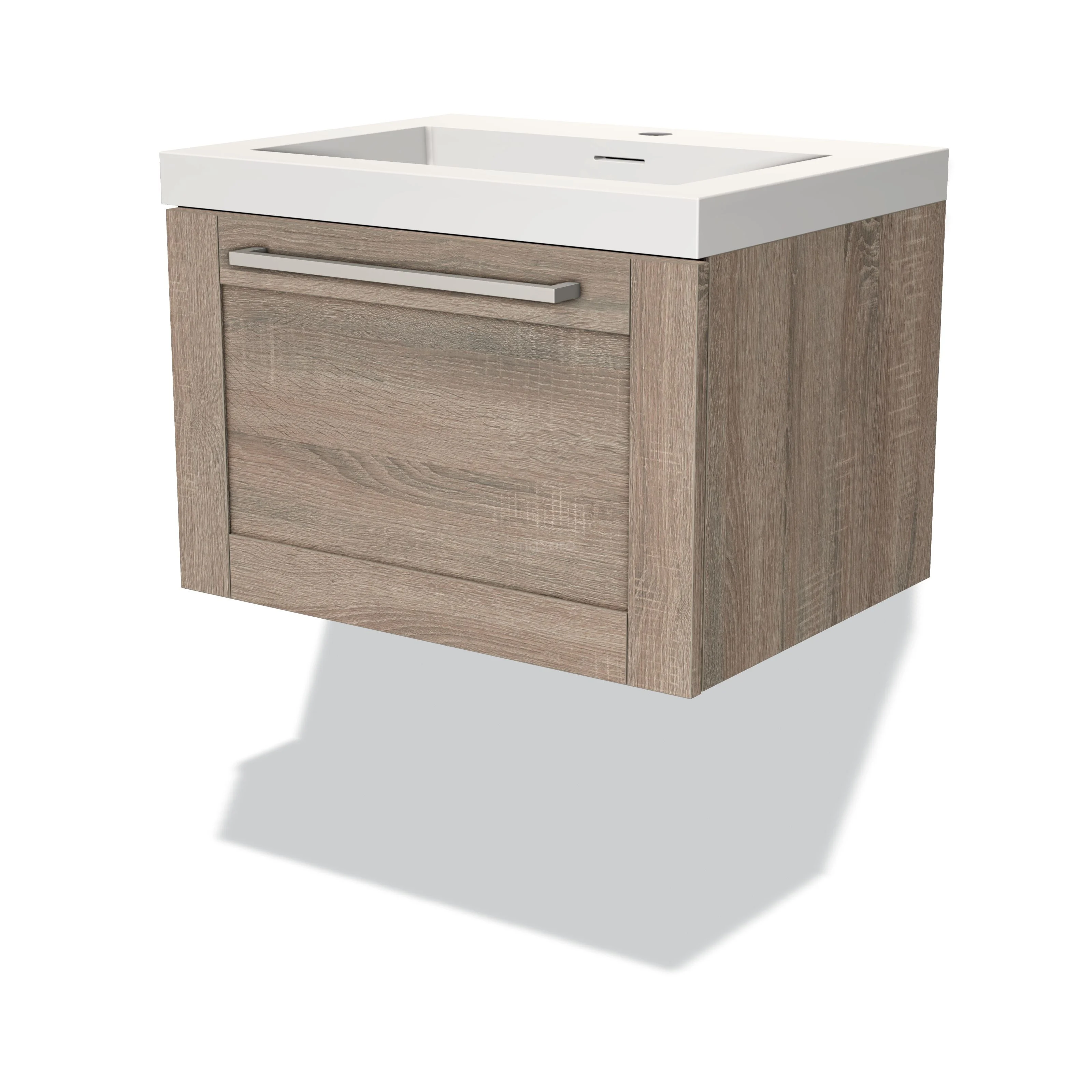 Modulo Bathroom furniture with sink | 60 cm Oak Bordered front Solid surface 1 drawer