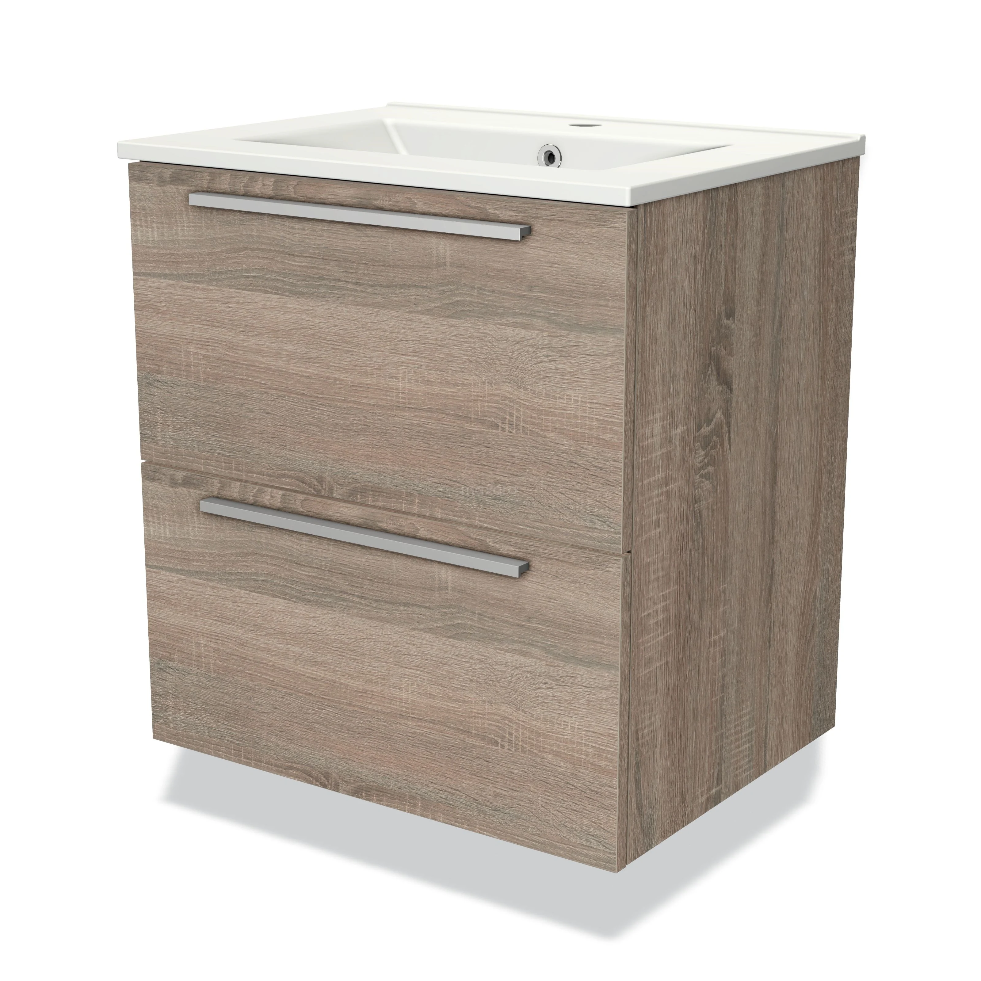 Modulo Bathroom furniture with sink | 60 cm Oak Flat front Ceramic 2 Stacked drawers