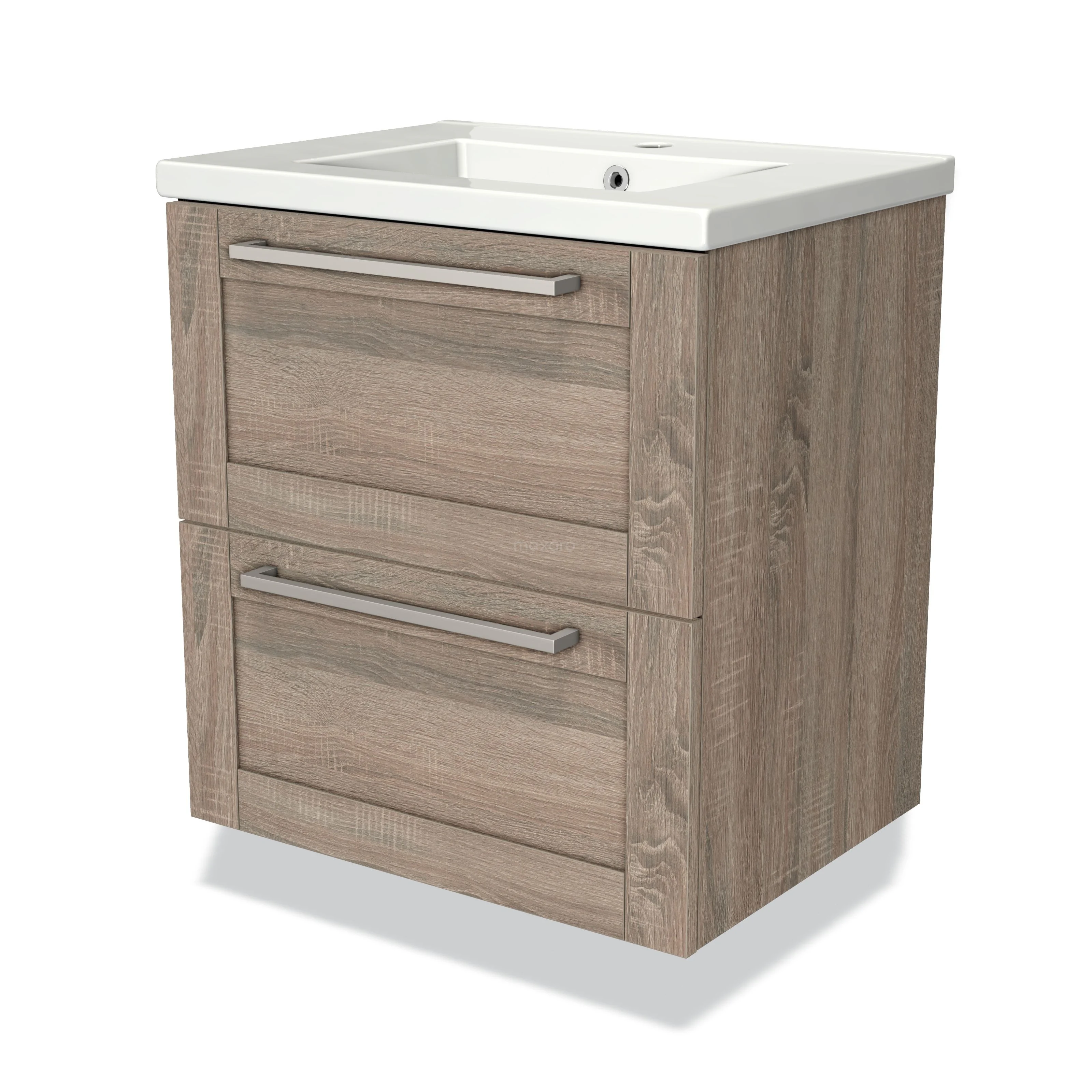 Modulo Bathroom furniture with sink | 60 cm Oak Frame front Ceramic 2 Stacked drawers