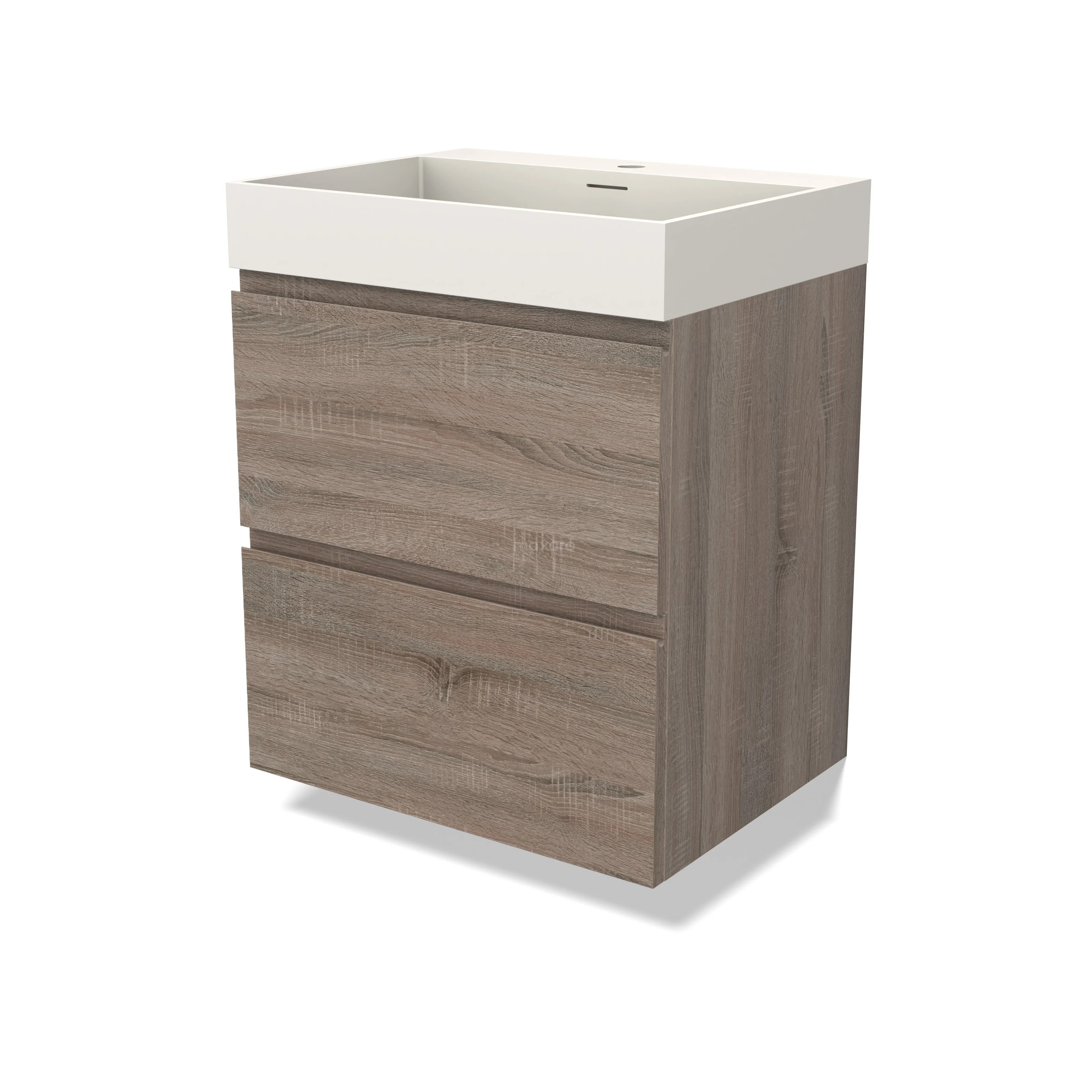 Modulo Bathroom furniture with sink | 60 cm Oak Handle-less front Solid surface 2 Stacked drawers