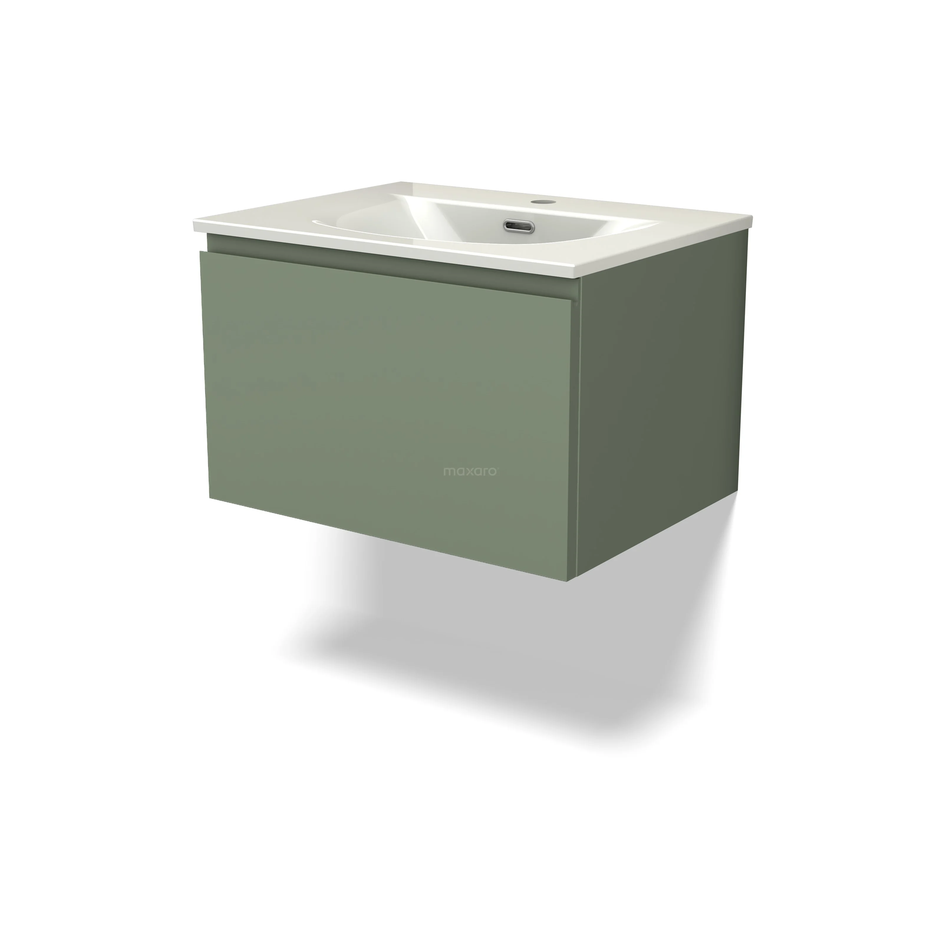 Modulo Bathroom furniture with sink | 60 cm Sage green Handle-less front Ceramic 1 drawer