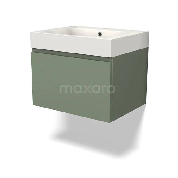 Modulo Bathroom furniture with sink | 60 cm Sage green Handle-less front Mineral marble 1 drawer