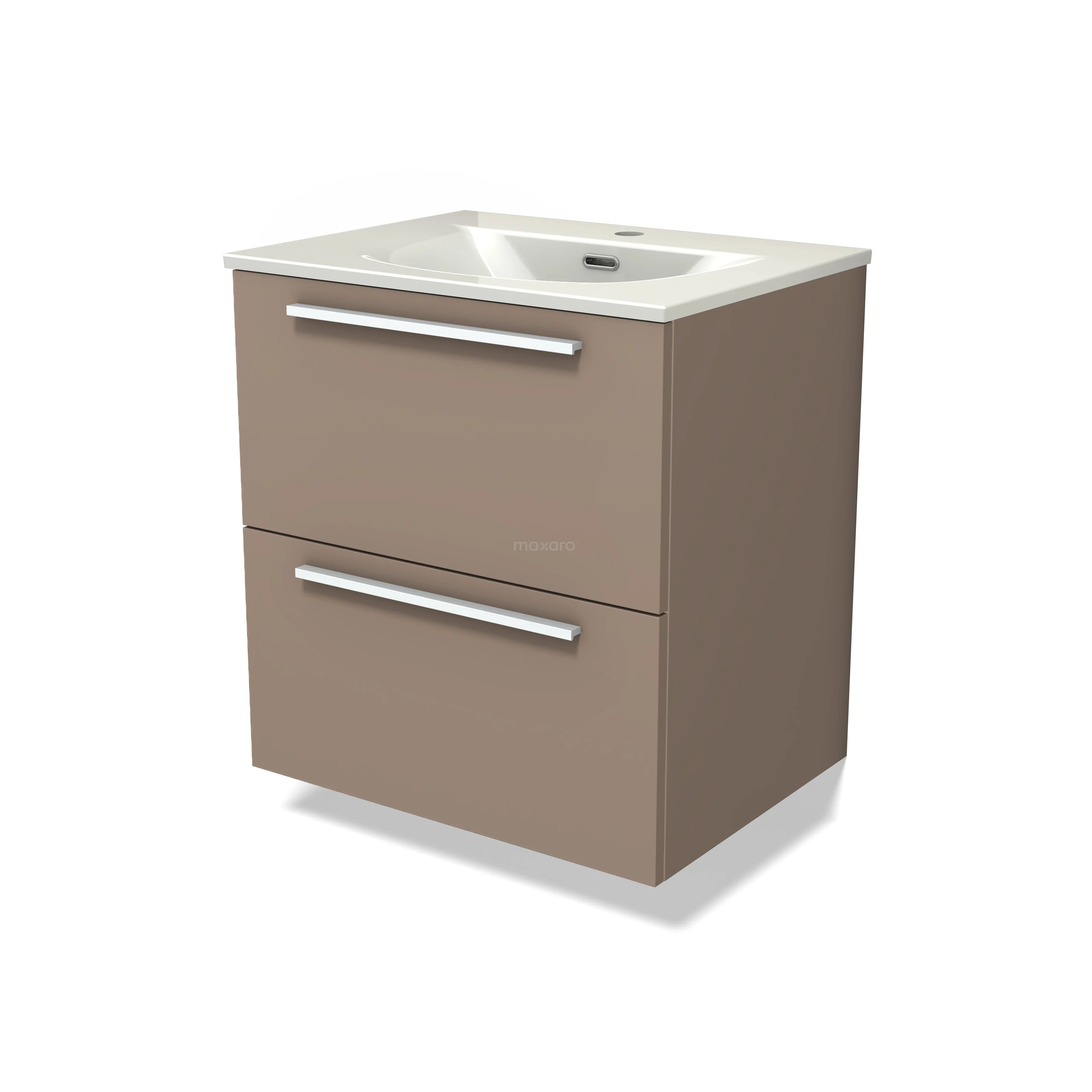 Modulo Bathroom furniture with sink | 60 cm Taupe Flat front Ceramic 2 Stacked drawers