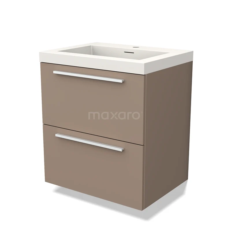 Modulo Bathroom furniture with sink | 60 cm Taupe Flat front Solid surface 2 Stacked drawers