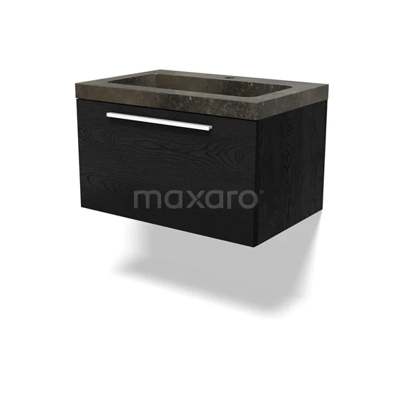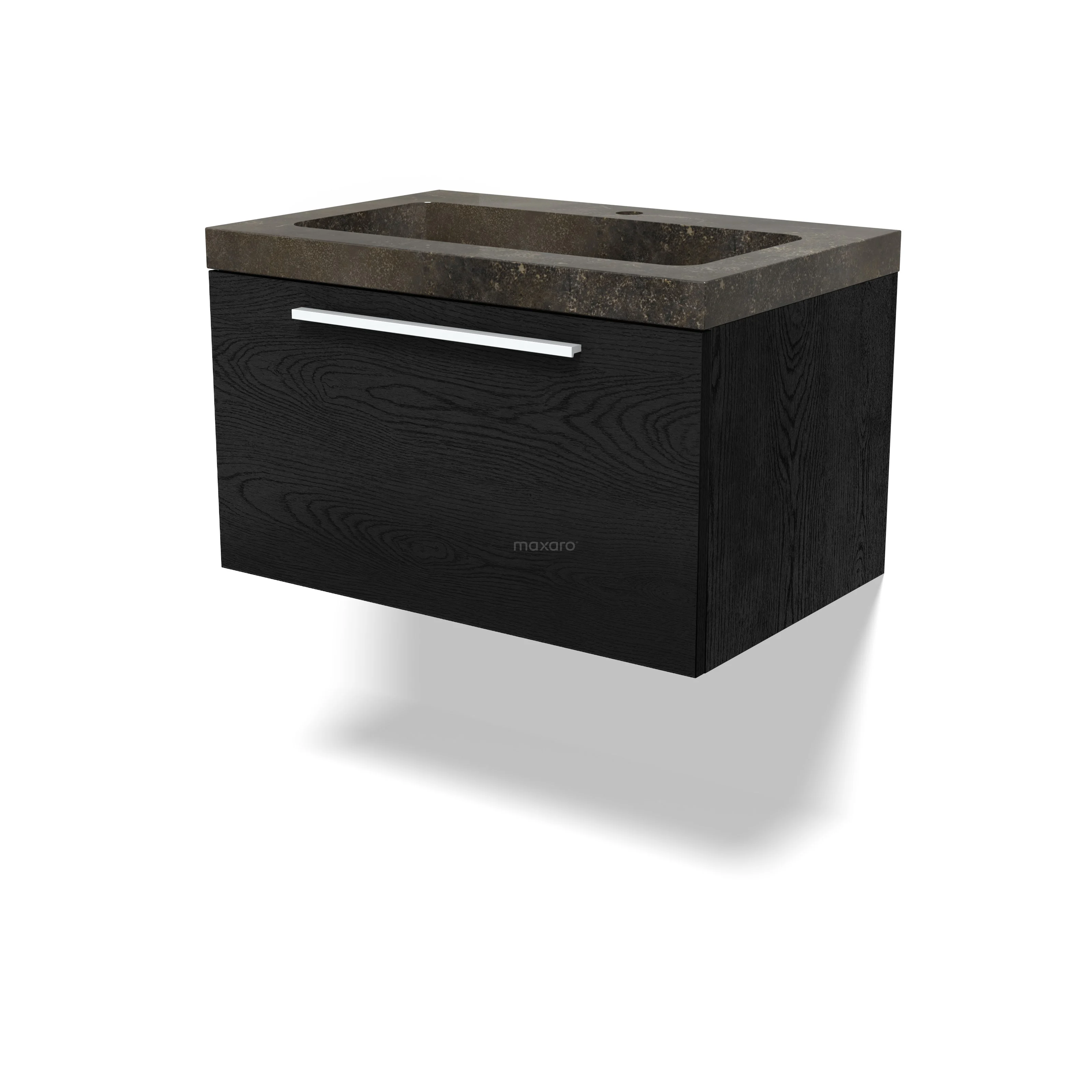 Modulo Bathroom furniture with sink | 70 cm Black oak Flat front Natural stone 1 drawer