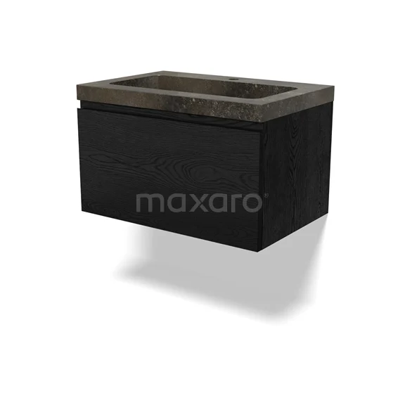 Modulo Bathroom furniture with sink | 70 cm Black oak Handle-less front Natural stone 1 drawer