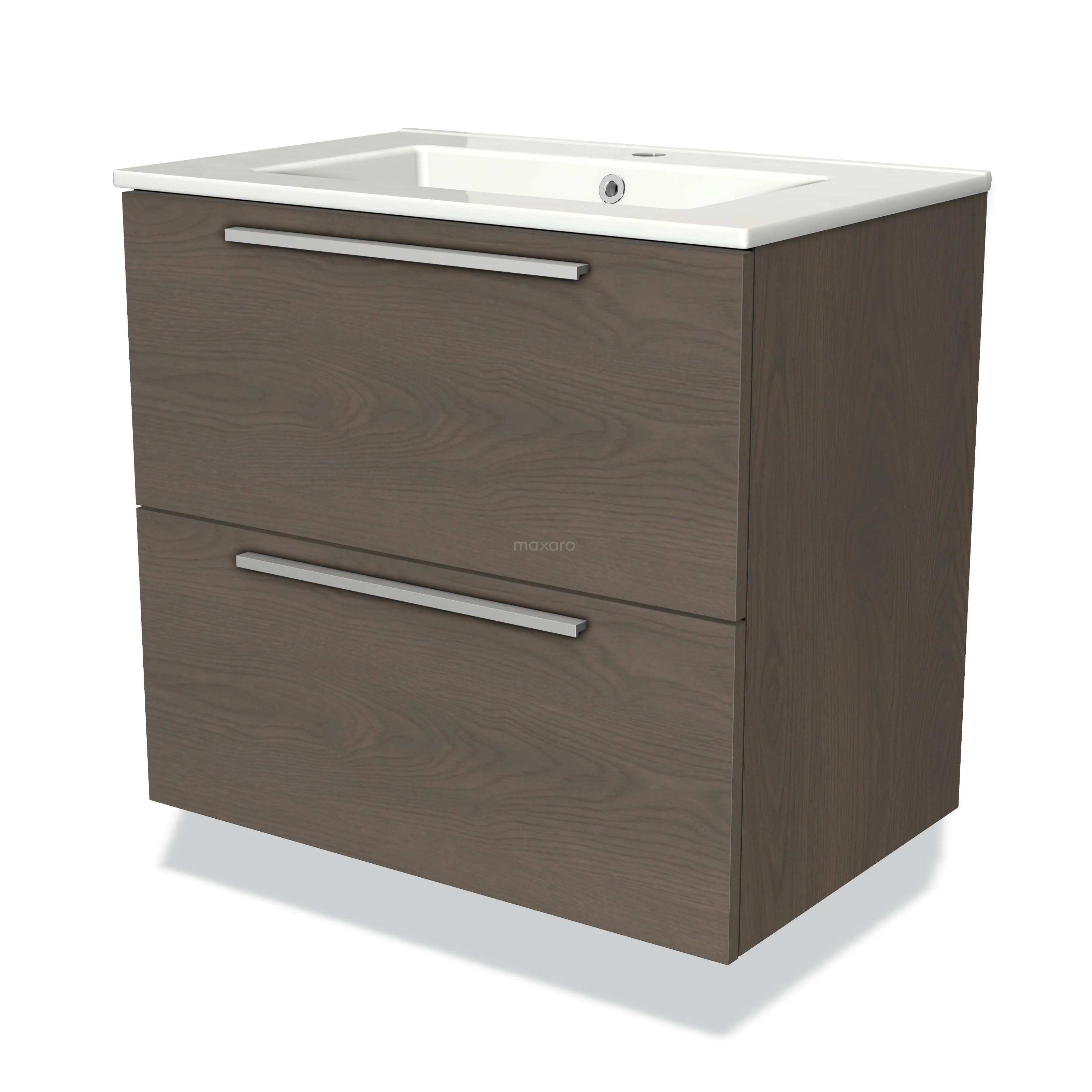 Modulo Bathroom furniture with sink | 70 cm Dark brown oak Flat front Ceramic 2 Stacked drawers