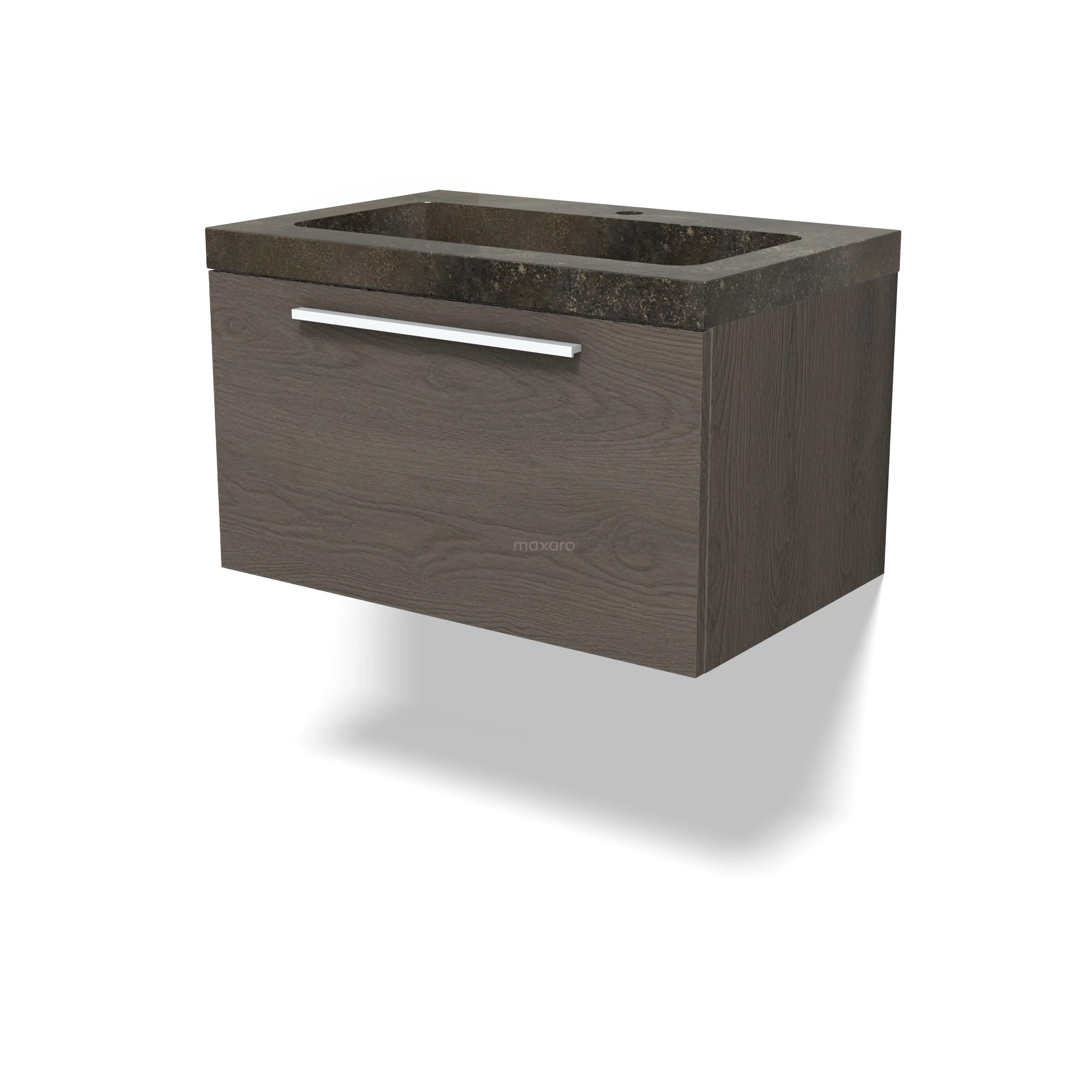 Modulo Bathroom furniture with sink | 70 cm Dark brown oak Flat front Natural stone 1 drawer