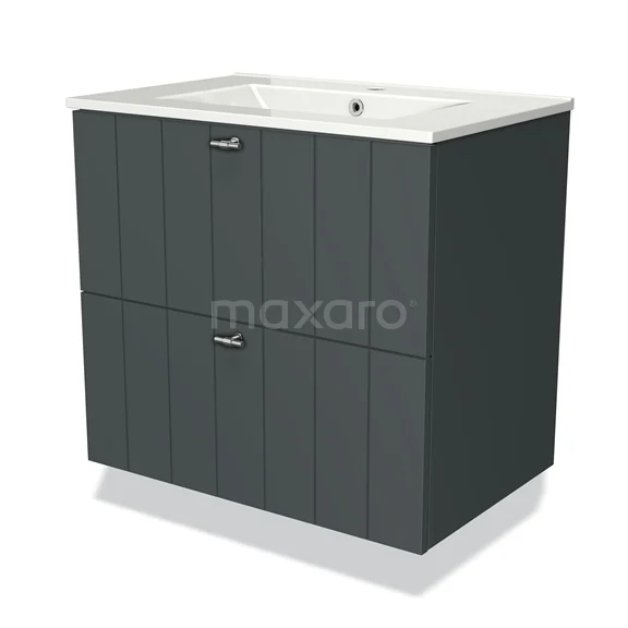 Modulo Bathroom furniture with sink | 70 cm Dark grey Slat front Ceramic 2 Stacked drawers