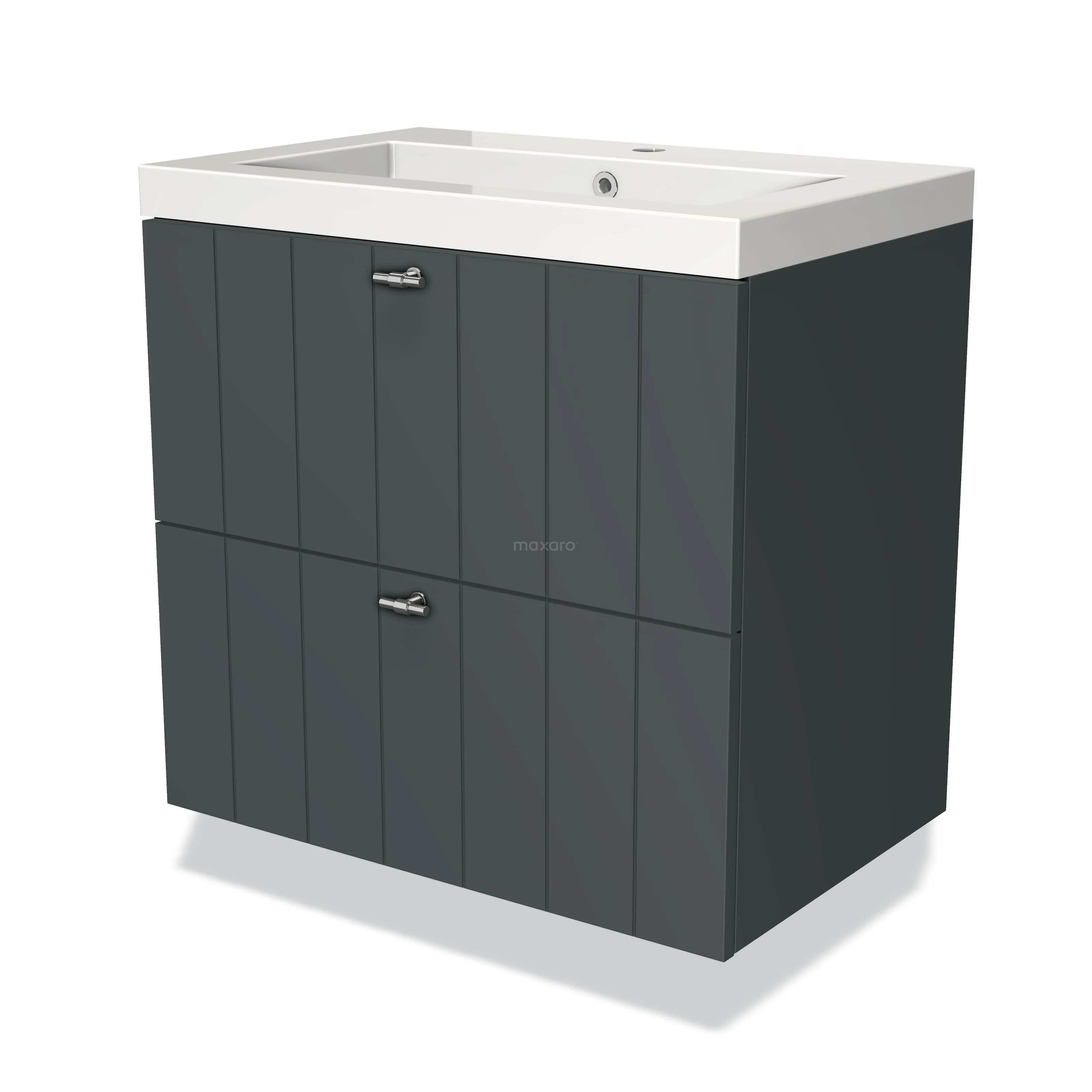 Modulo Bathroom furniture with sink | 70 cm Dark grey Slat front Mineral marble 2 Stacked drawers