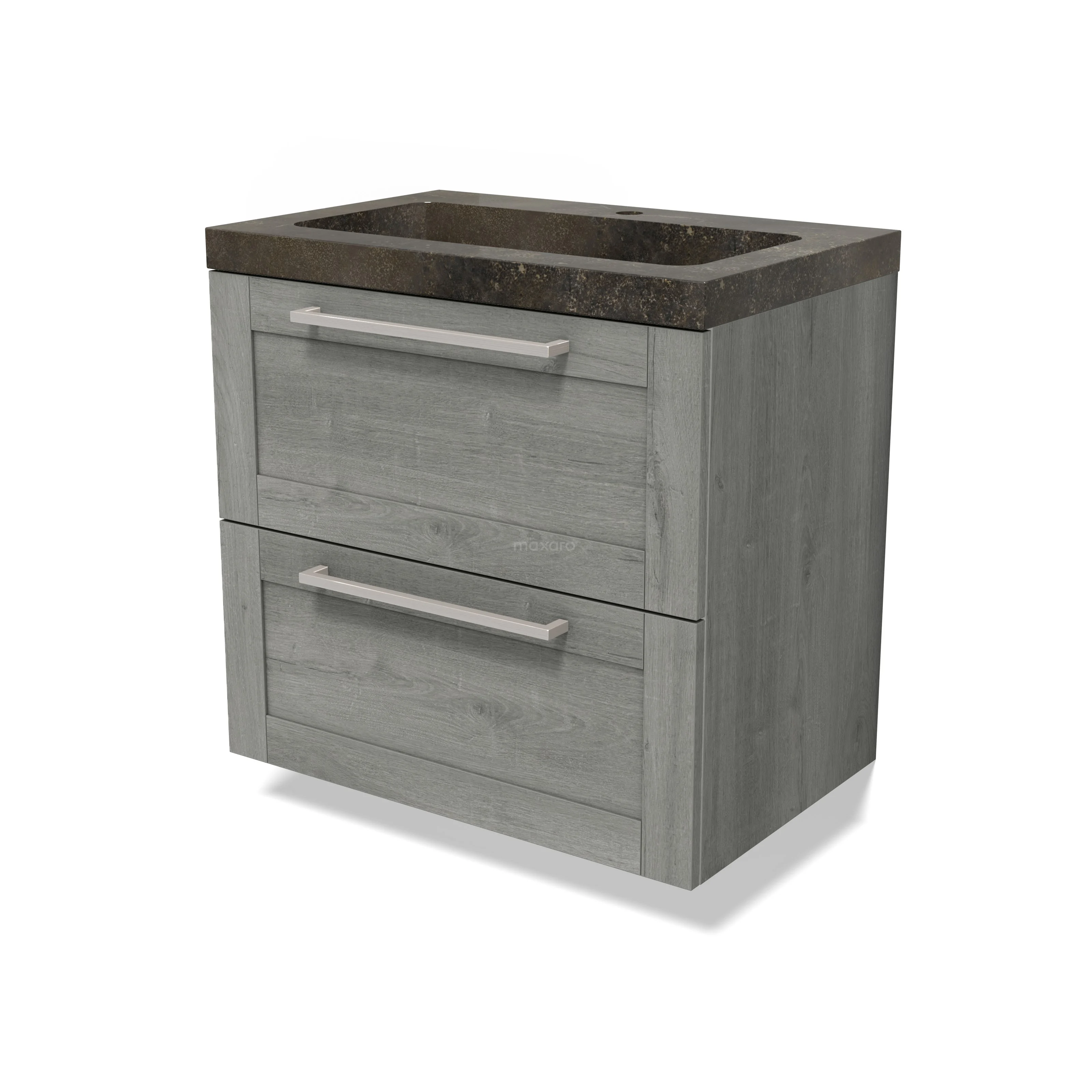 Modulo Bathroom furniture with sink | 70 cm Grey oak Frame front Natural stone 2 Stacked drawers