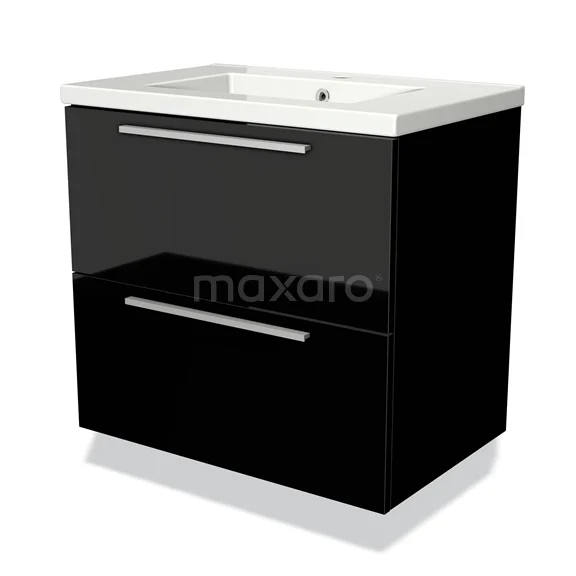 Modulo Bathroom furniture with sink | 70 cm High-gloss black Flat front Ceramic 2 Stacked drawers