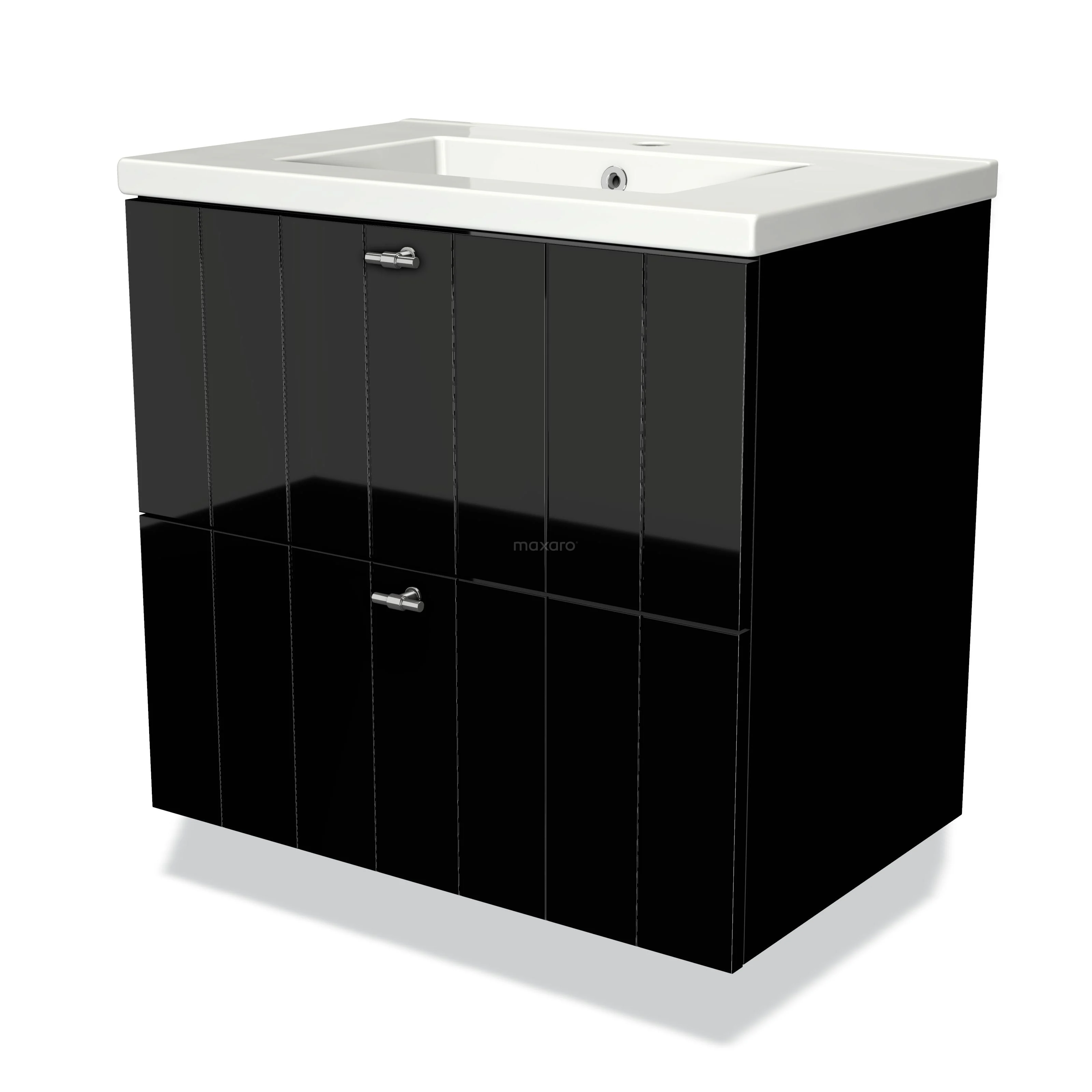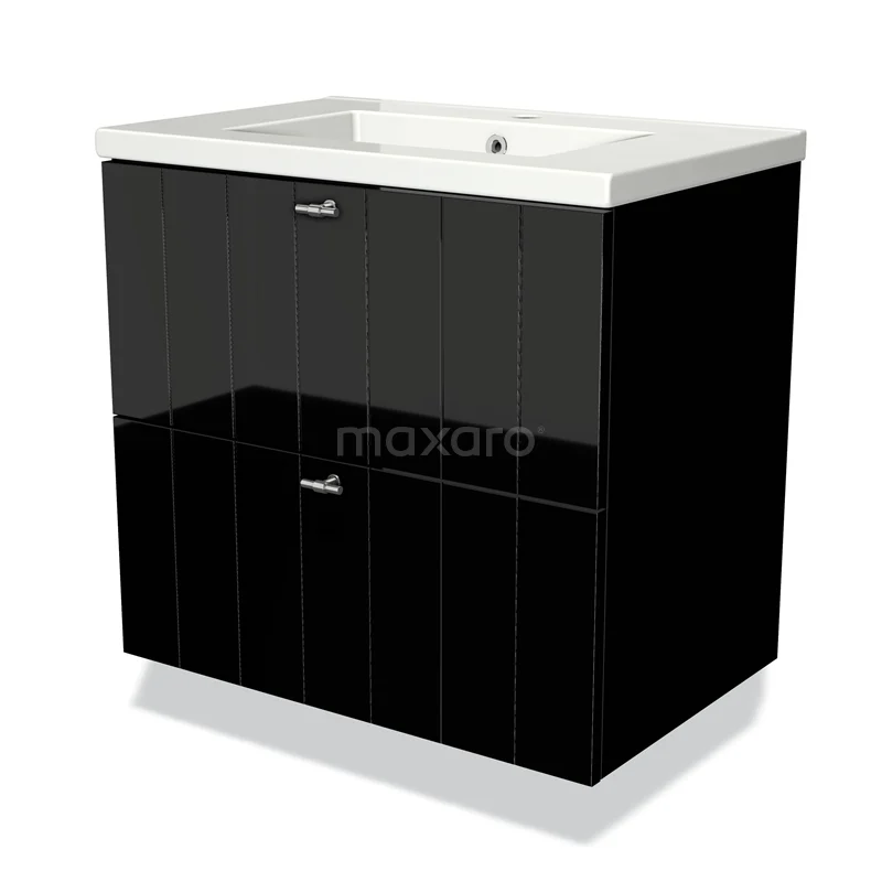 Modulo Bathroom furniture with sink | 70 cm High-gloss black Slat front Ceramic 2 Stacked drawers