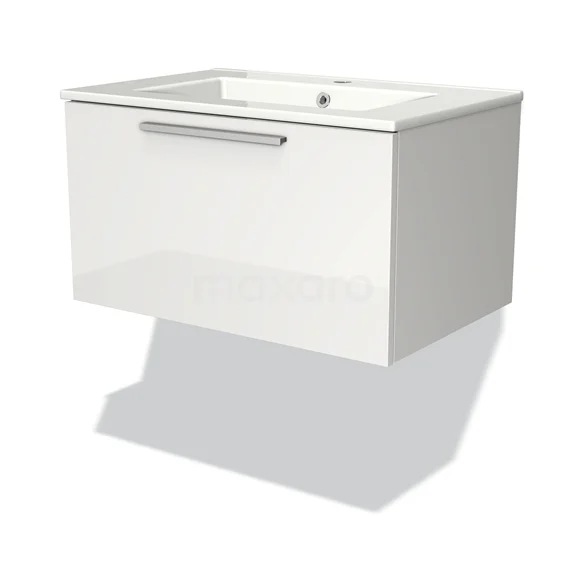 Modulo Bathroom furniture with sink | 70 cm High-gloss white Flat front Ceramic 1 drawer