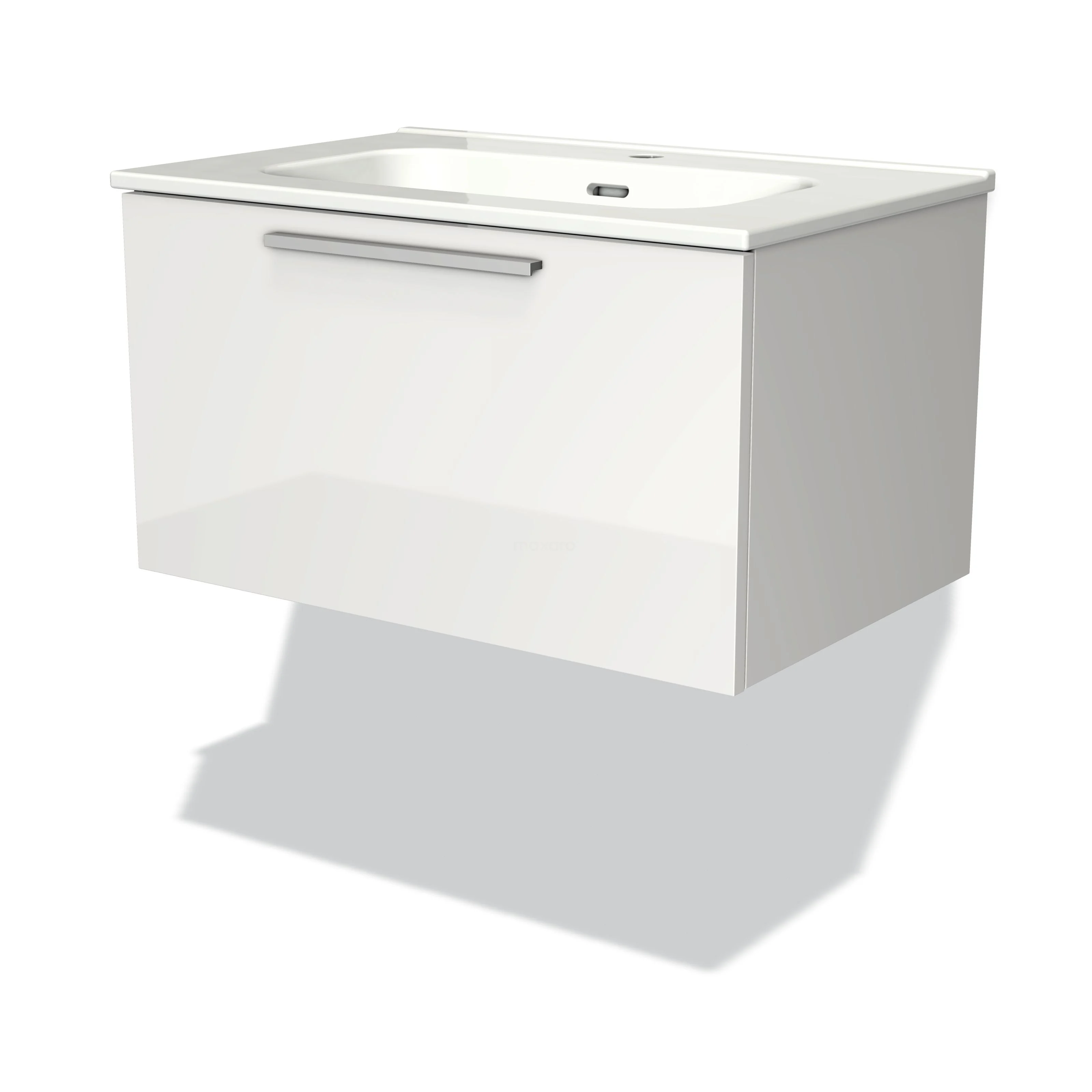 Modulo Bathroom furniture with sink | 70 cm High-gloss white Flat front Ceramic 1 drawer