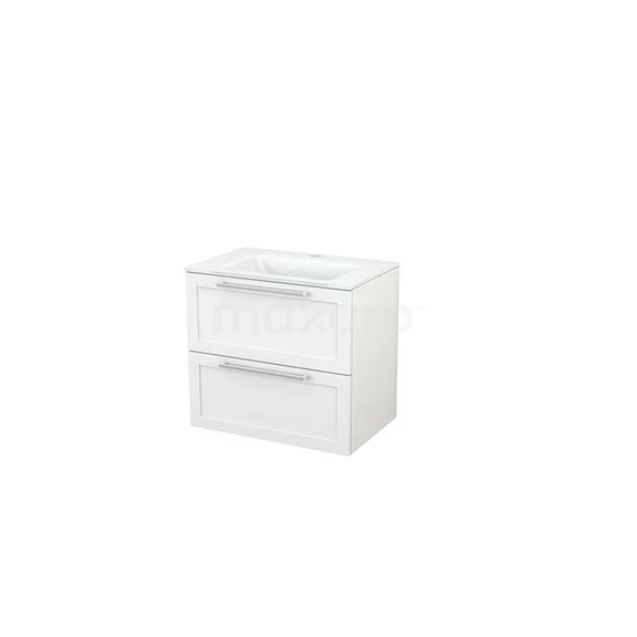 Modulo+ Bathroom furniture with sink | 70 cm High-gloss white Frame front Glass 2 Stacked drawers