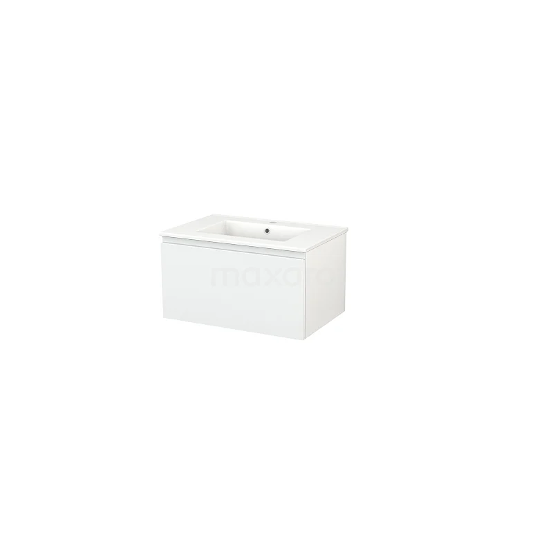 Modulo+ Bathroom furniture with sink | 70 cm High-gloss white Handle-less front Ceramic 1 drawer