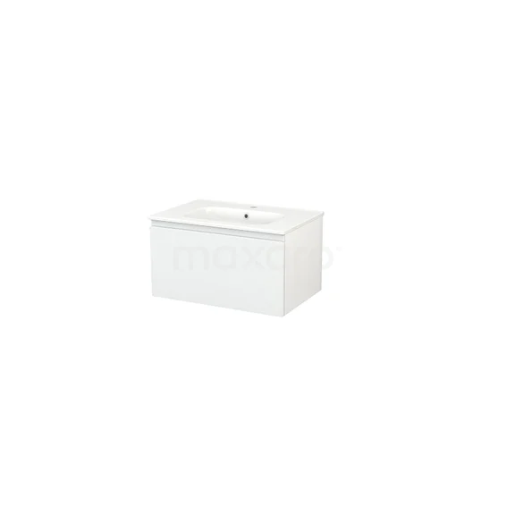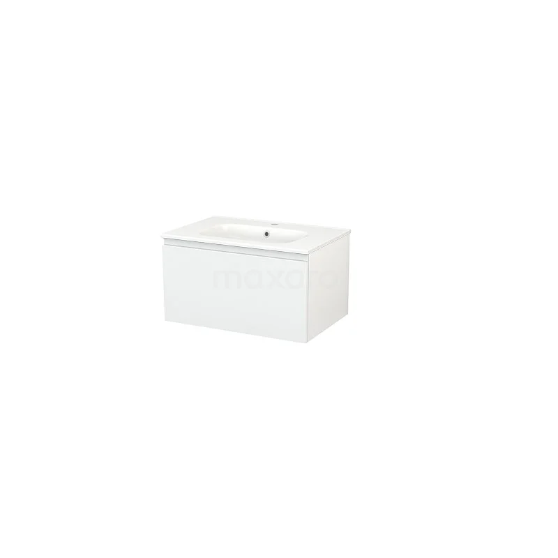 Modulo+ Bathroom furniture with sink | 70 cm High-gloss white Handle-less front Ceramic 1 drawer