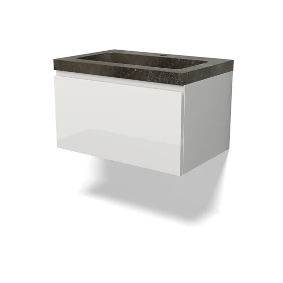Modulo Bathroom furniture with sink | 70 cm High-gloss white Handle-less front Natural stone 1 drawer