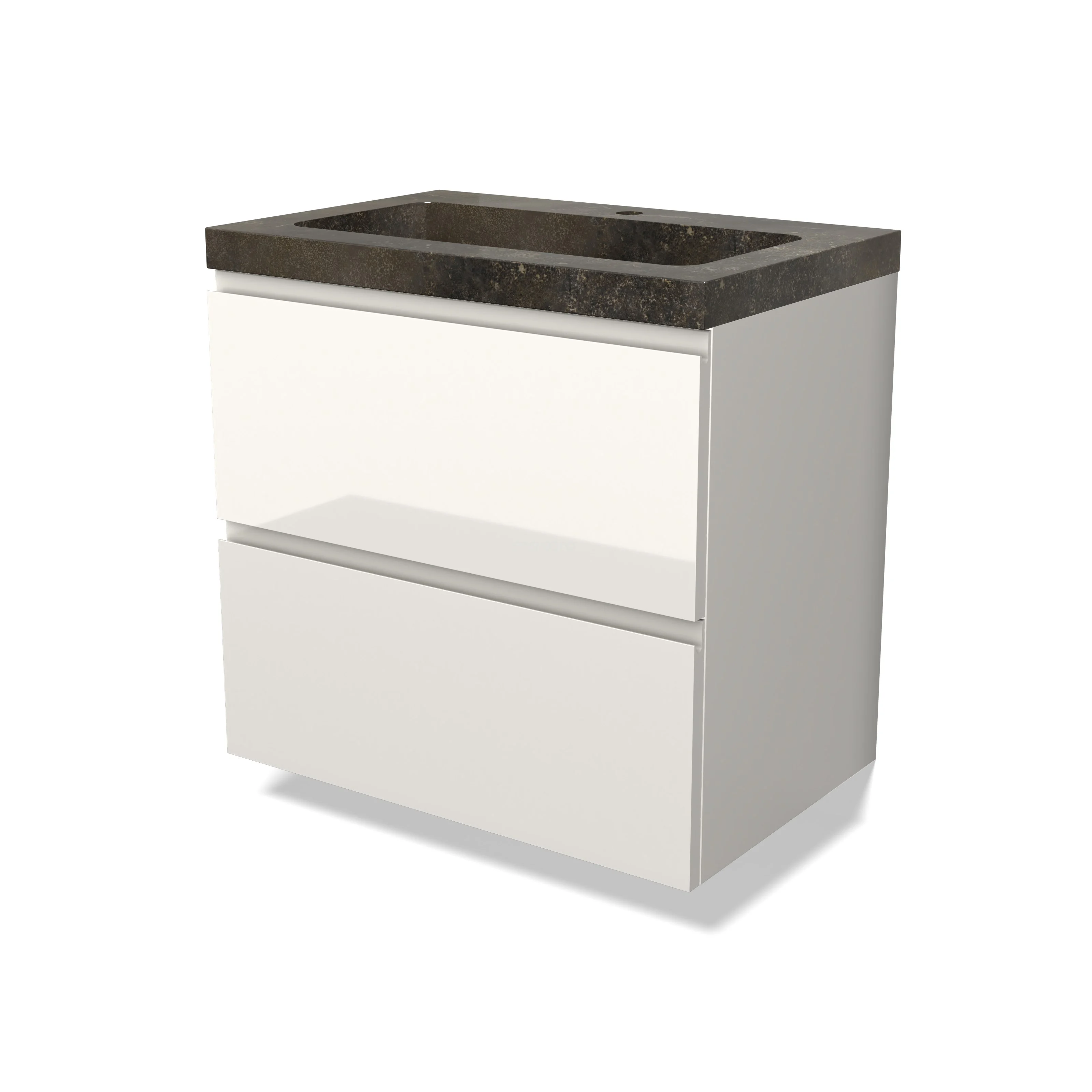 Modulo Bathroom furniture with sink | 70 cm High-gloss white Handle-less front Natural stone 2 Stacked drawers