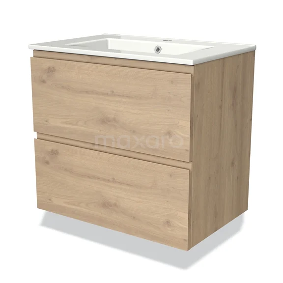 Modulo Bathroom furniture with sink | 70 cm Light brown oak Handle-less front Ceramic 2 Stacked drawers