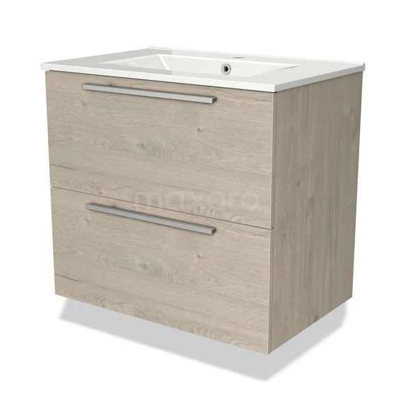 Modulo Bathroom furniture with sink | 70 cm Light grey oak Flat front Ceramic 2 Stacked drawers