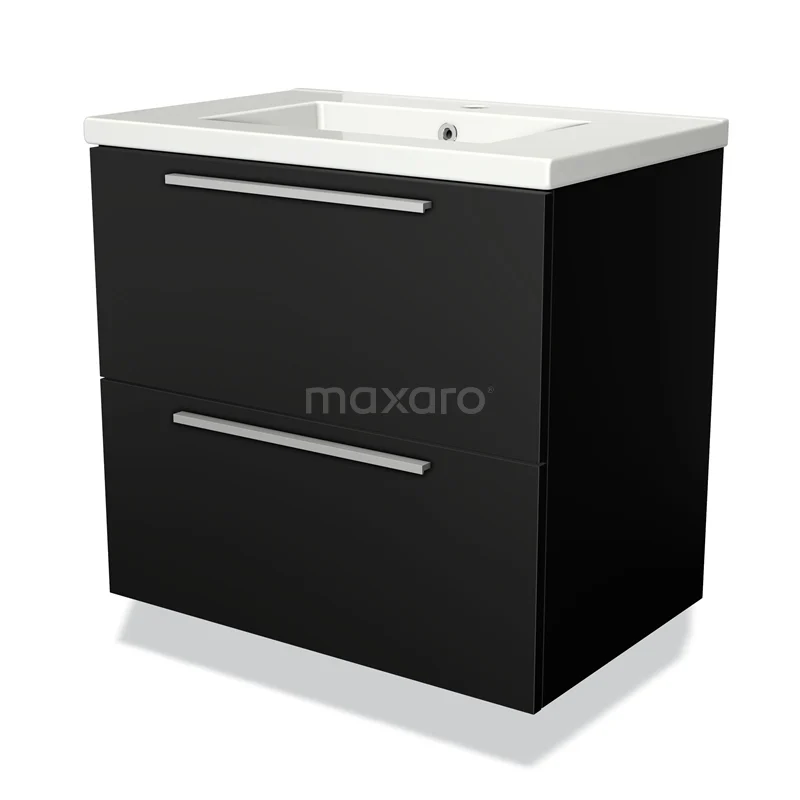 Modulo Bathroom furniture with sink | 70 cm Matte black Flat front Ceramic 2 Stacked drawers