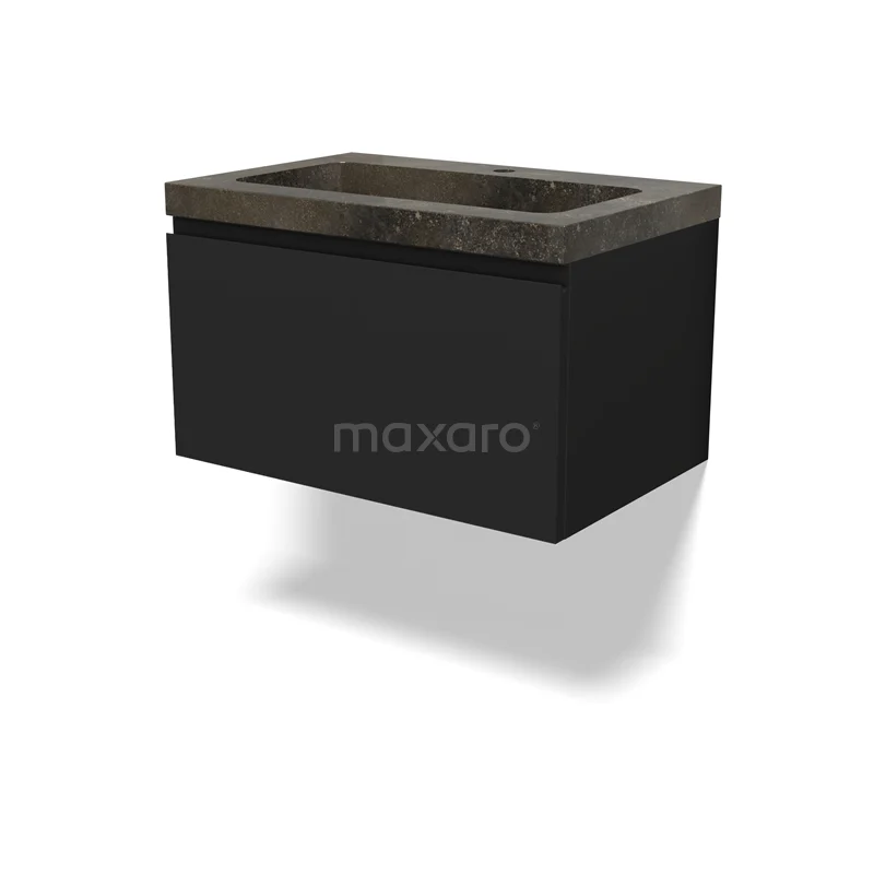 Modulo Bathroom furniture with sink | 70 cm Matte black Handle-less front Natural stone 1 drawer