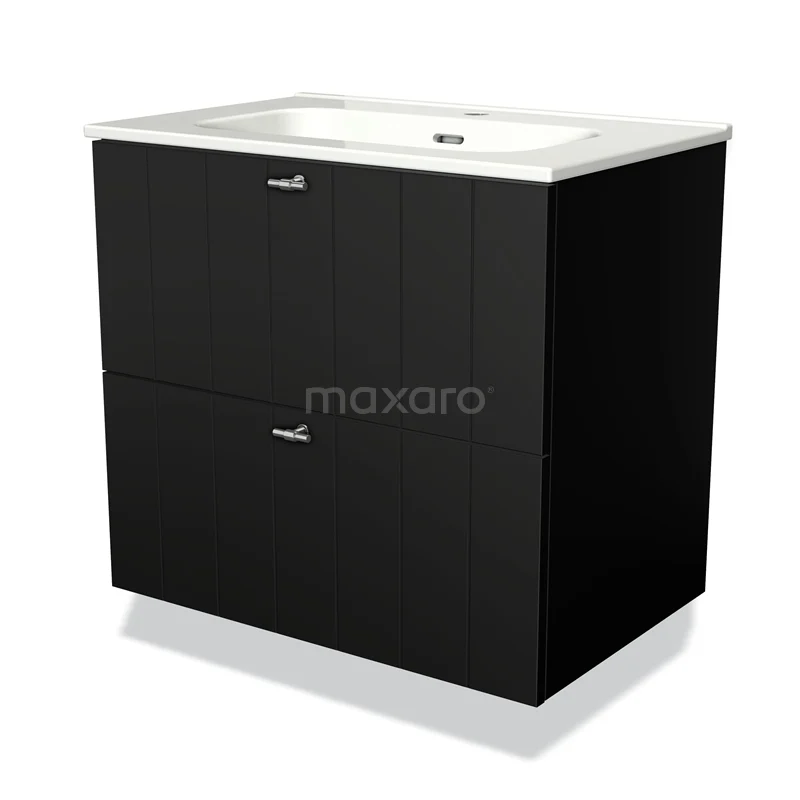 Modulo Bathroom furniture with sink | 70 cm Matte black Slat front Ceramic 2 Stacked drawers
